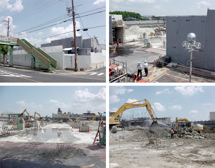 当日は、内装解体も完了し、建屋の解体の準備として地下階を再生砕石にて埋め立てを行っていました。